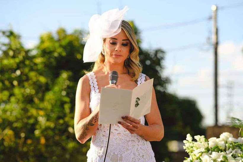 “É com esta salva de palmas que todos nós declaramos você, Jussara, o grande amor da sua vida”, disse a celebrante do casamento (uma