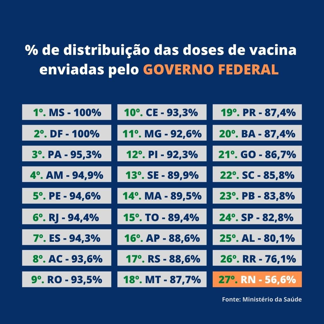O Rio Grande do Norte, da incompetente governadora petista Fátima Bezerra, figura em último lugar, mostrando a irresponsabilidade de uma gestão em salvar vidas.