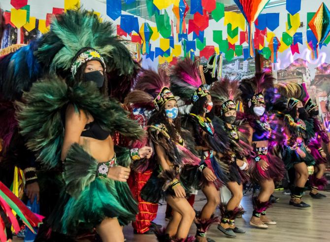 A segunda atração do “Arraiá do Povo em Casa” foi a Dança Portuguesa Arte e Beleza de Portugal, com a tradicional originalidade dos ritmos portugueses, abrilhantando a festa com as cores dos seus trajes e os passos coreografados dos seus dançarinos.