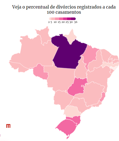 Os habitantes do Pará são os que mais se divorciaram no Brasil em 2021. Para cada 100 casamentos registrados em cartórios no estado, 36 outros casais resolveram que a relação já não tinha mais como seguir, e solicitaram o divórcio.