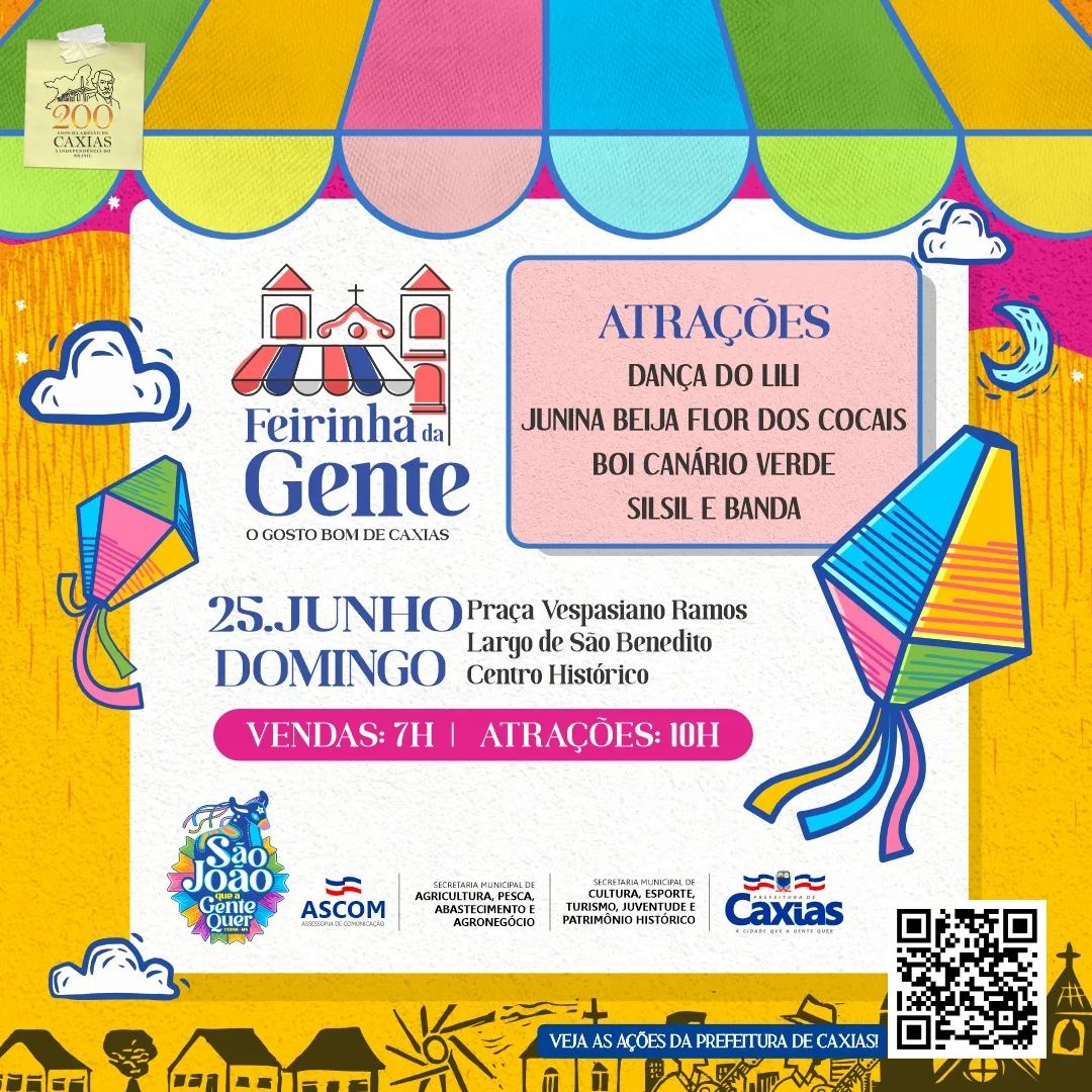 A Prefeitura de Caxias (MA), por meio da Secretaria Municipal de Cultura, Esporte, Turismo, Juventude e Patrimônio Histórico, em pleno São João Que a Gente Quer, marca o passo também na Feirinha da Gente com atrações culturais: Dança do Lili, Junina Beija Flor dos Cocais, Boi Canário Verde e SilSil e Banda.
