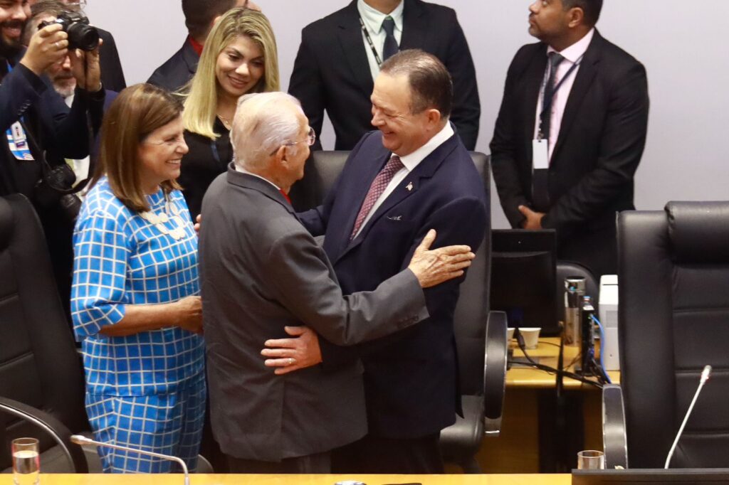 “E eu me sinto verdadeiramente honrado em estar governador em um momento tão significativo como este. Um dia em que, de forma muito justa, homenageamos José Sarney, um homem que dedicou toda a sua vida política a servir o Brasil”, disse o governador Carlos Brandão, durante pronunciamento feito na sessão solene realizada pela Assembleia Legislativa do Maranhão, na qual entregou ao ex-presidente da República a Medalha “Manuel Beckman, maior honraria concedida pelo Parlamento Estadual. A iniciativa foi proposta pelo deputado Roberto Costa (MDB).