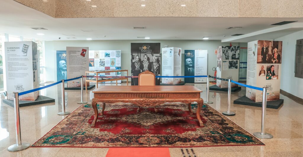 Realizada em parceria com a Fundação da Memória Republicana, a exposição “Hoje é Dia de… José Sarney” destaca parte da produção literária do imortal membro das Academias Brasileira (ABL) e Maranhense de Letras (AML). É composta por painéis que retratam capas de obras importantes do autor, trechos desses títulos, crônicas e críticas feitas em diversos períodos da história política e literária brasileira.
